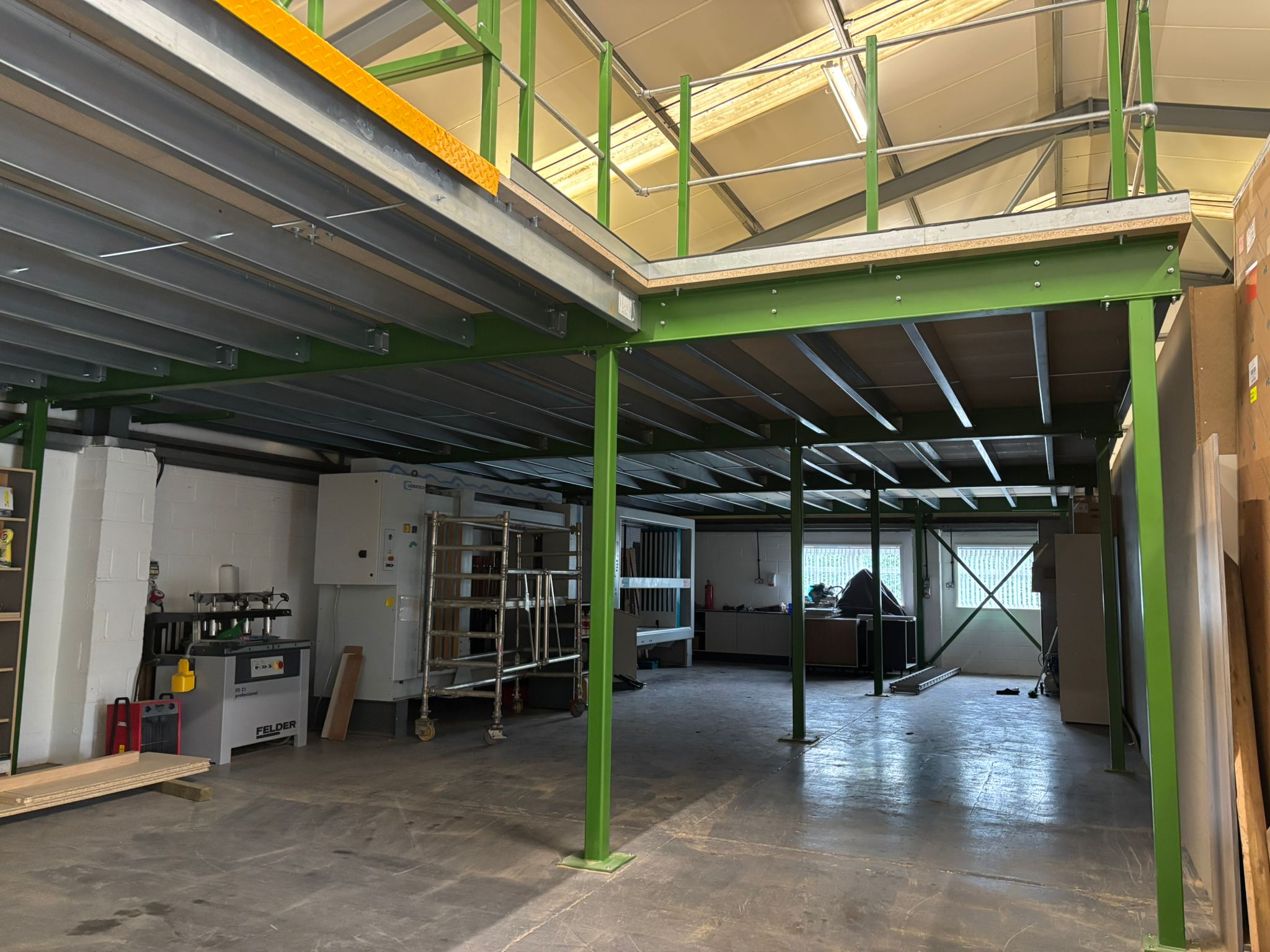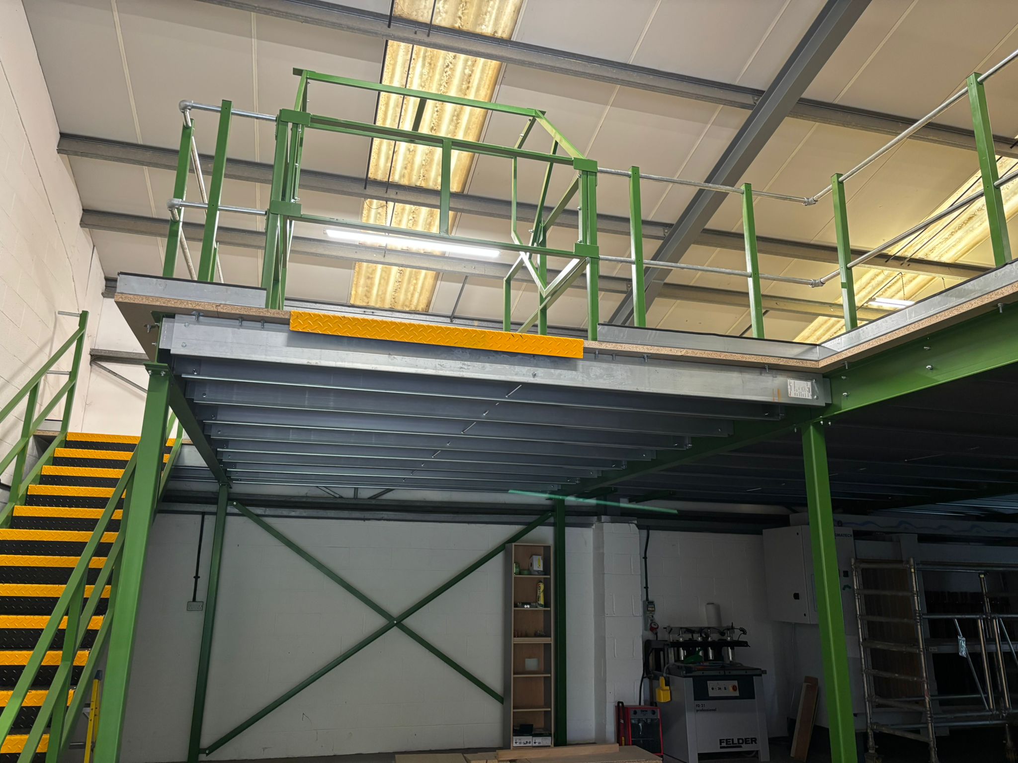 The mezzanine floor was carefully planned to maximise usability and ensure safe day-to-day operation. Key features of the installation included: