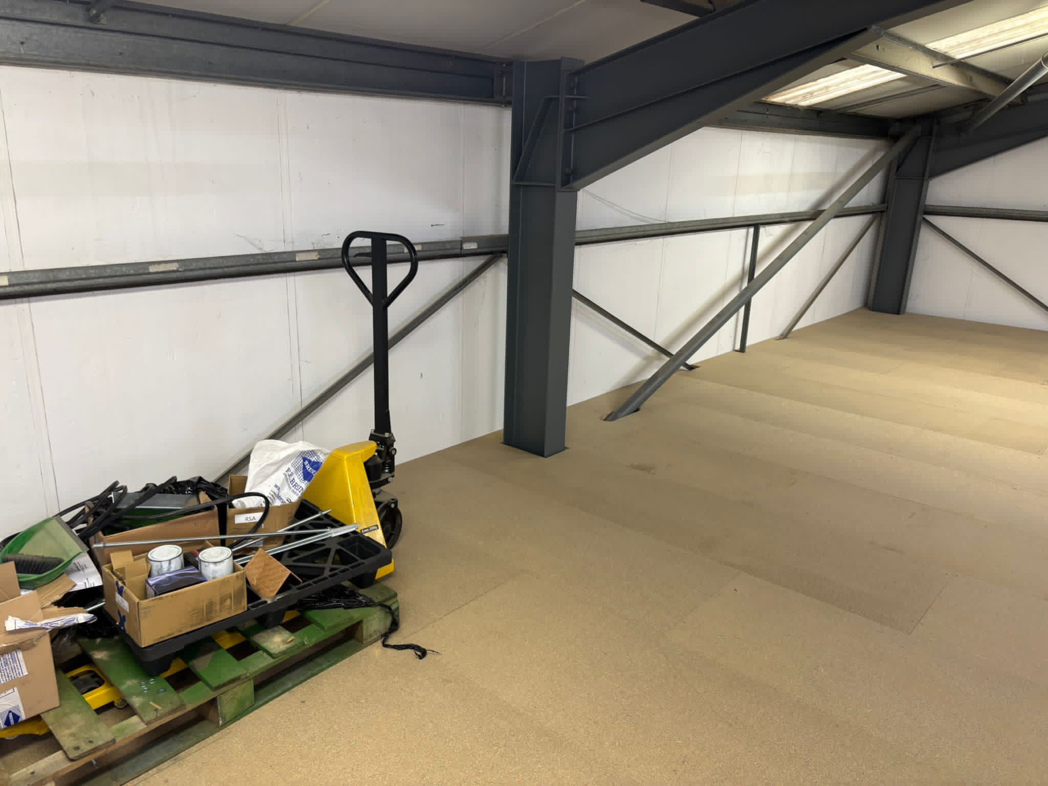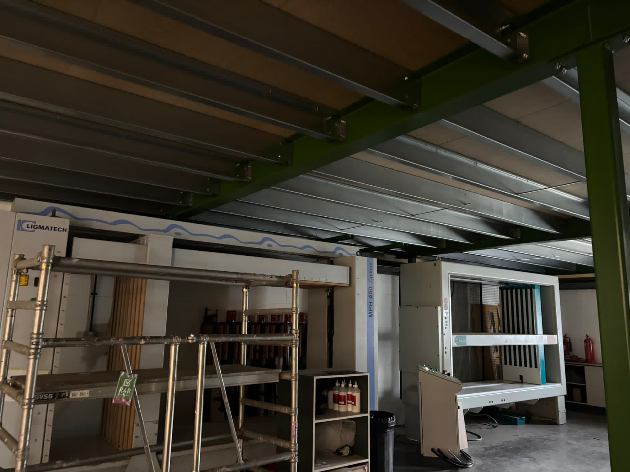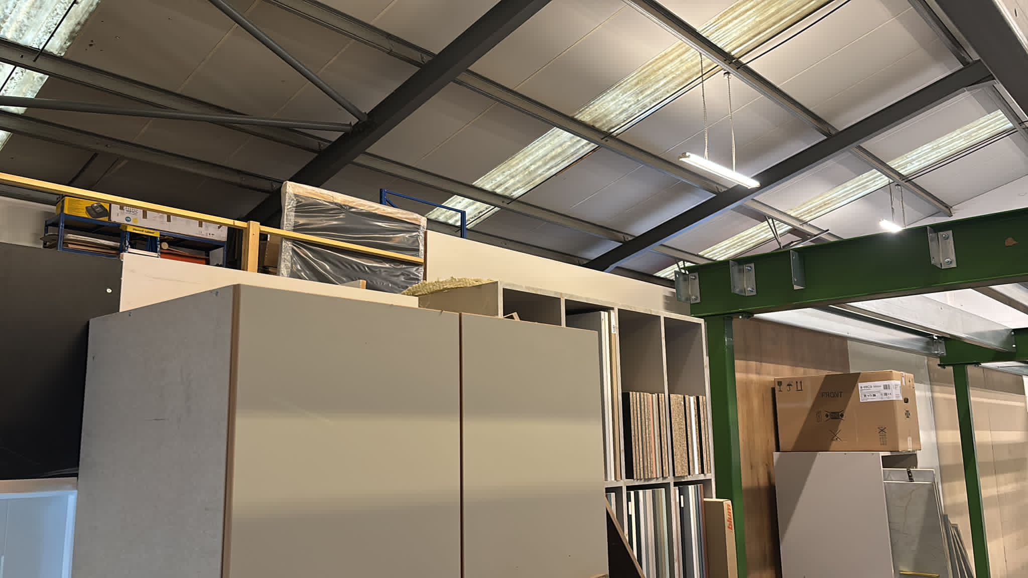 The project involved the full supply and installation of a steel mezzanine floor, creating a large additional storage platform without the need to expand the building footprint. As part of the design, the client opted to introduce a green finish to the steelwork, adding a vibrant touch to the workspace while maintaining a clean and professional look.
